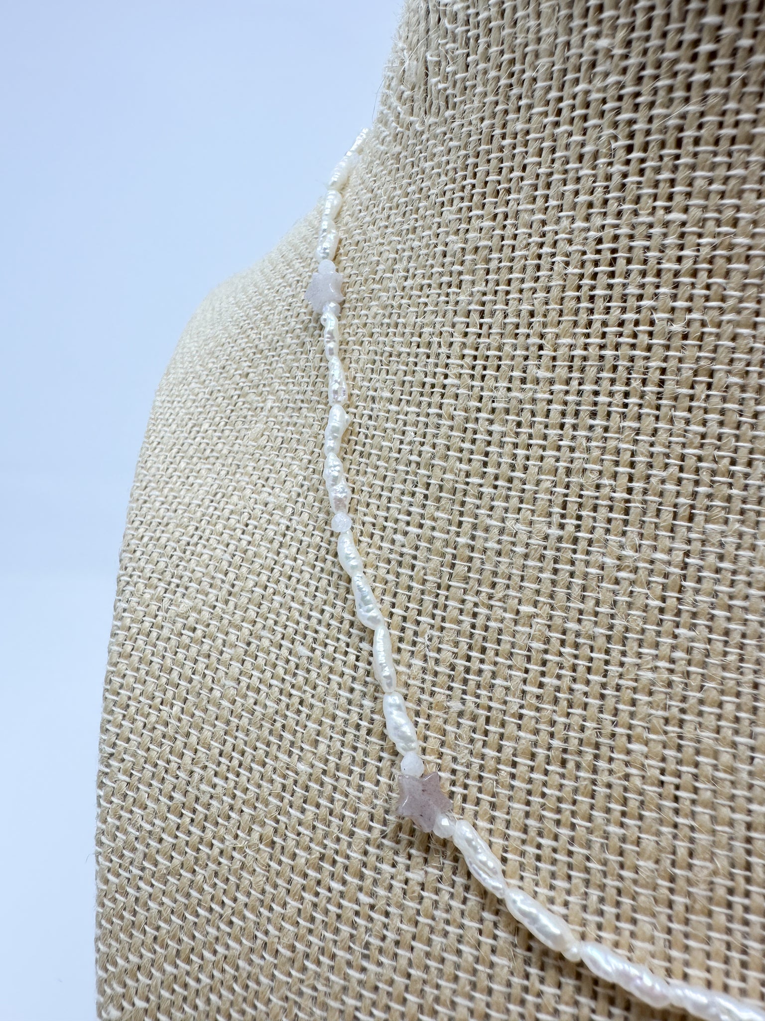 Details: 16’in. extends one inch. Pearl rose quartz stars.